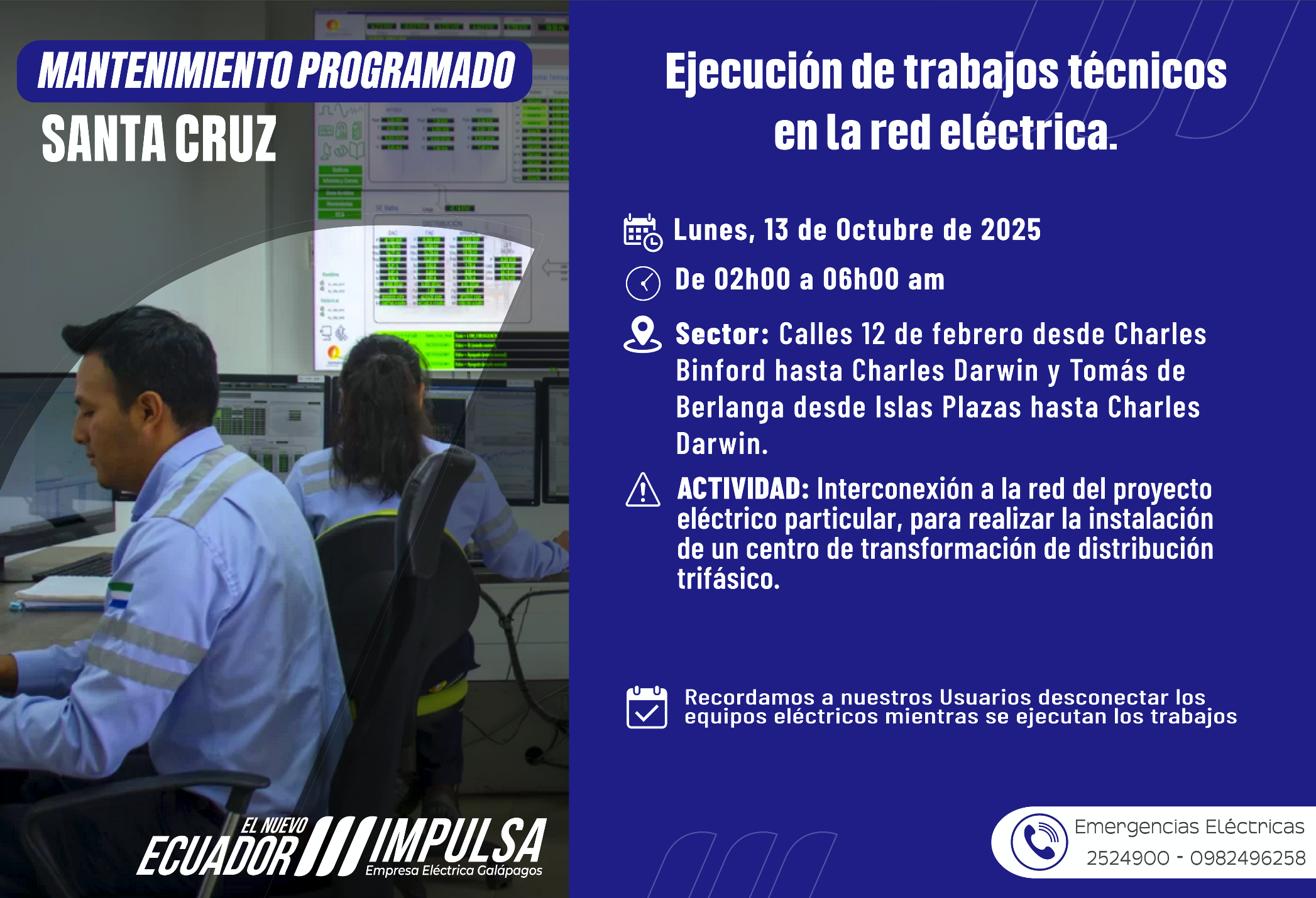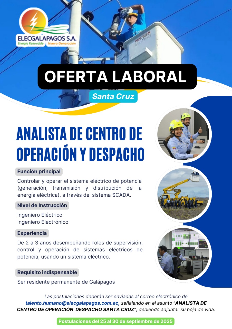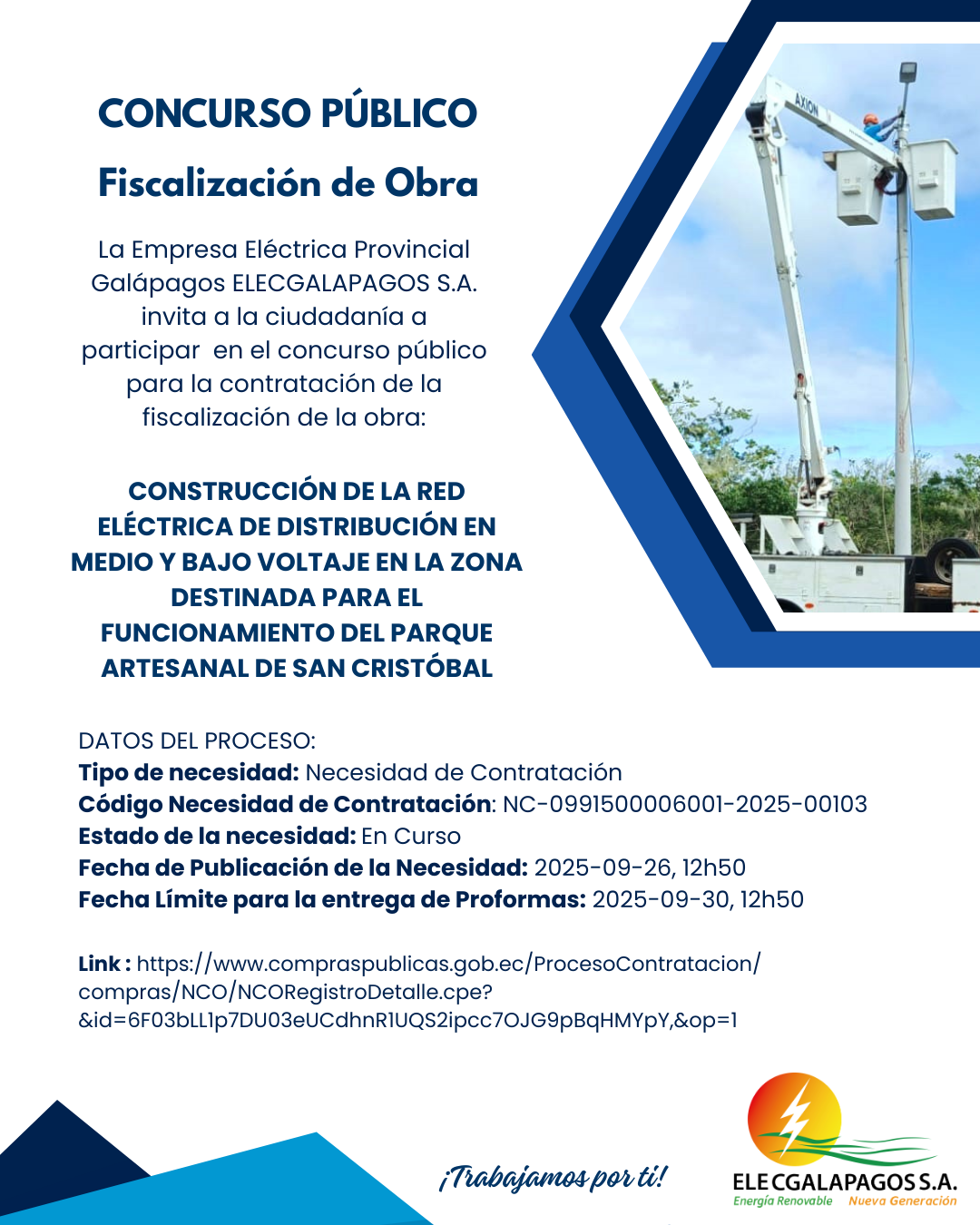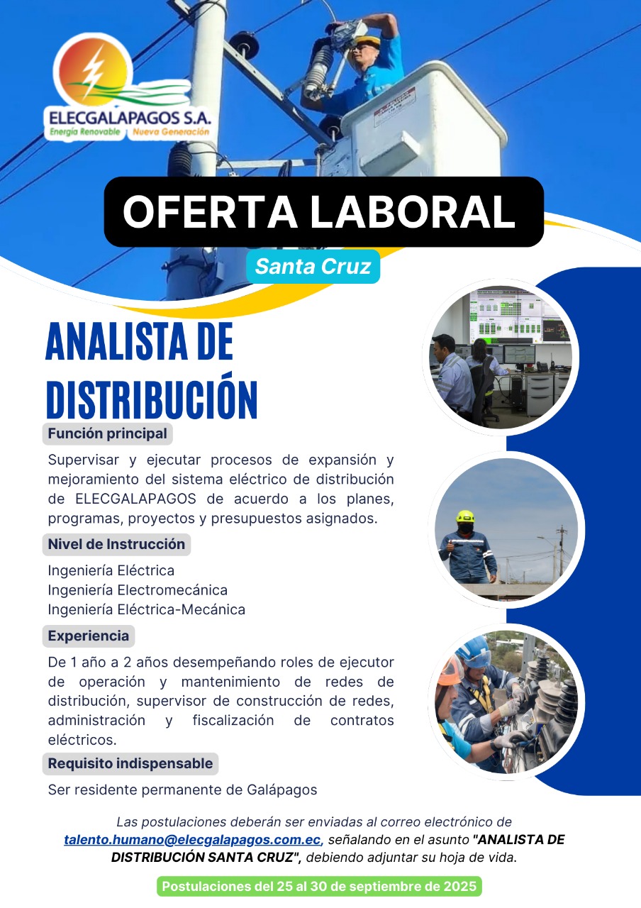 La Empresa Eléctrica Provincial Galápagos ELECGALAPAGOS S.A. tiene por objeto generar, transportar, distribuir y comercializar energía eléctrica en la provincia de Galápagos.