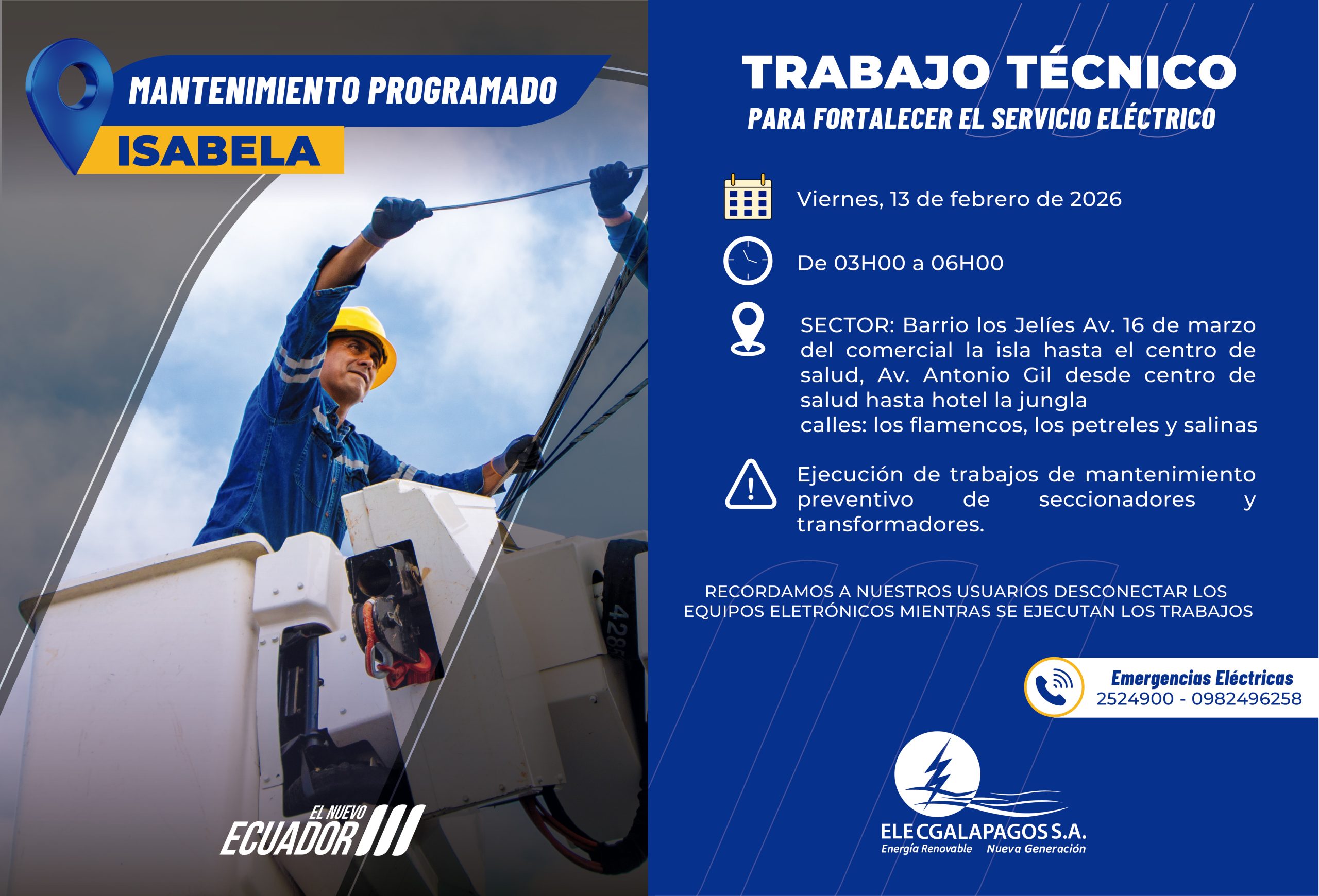 MANTENIMIENTO EMERGENTE- ISABELA- 13 DE FEBRERO 2026