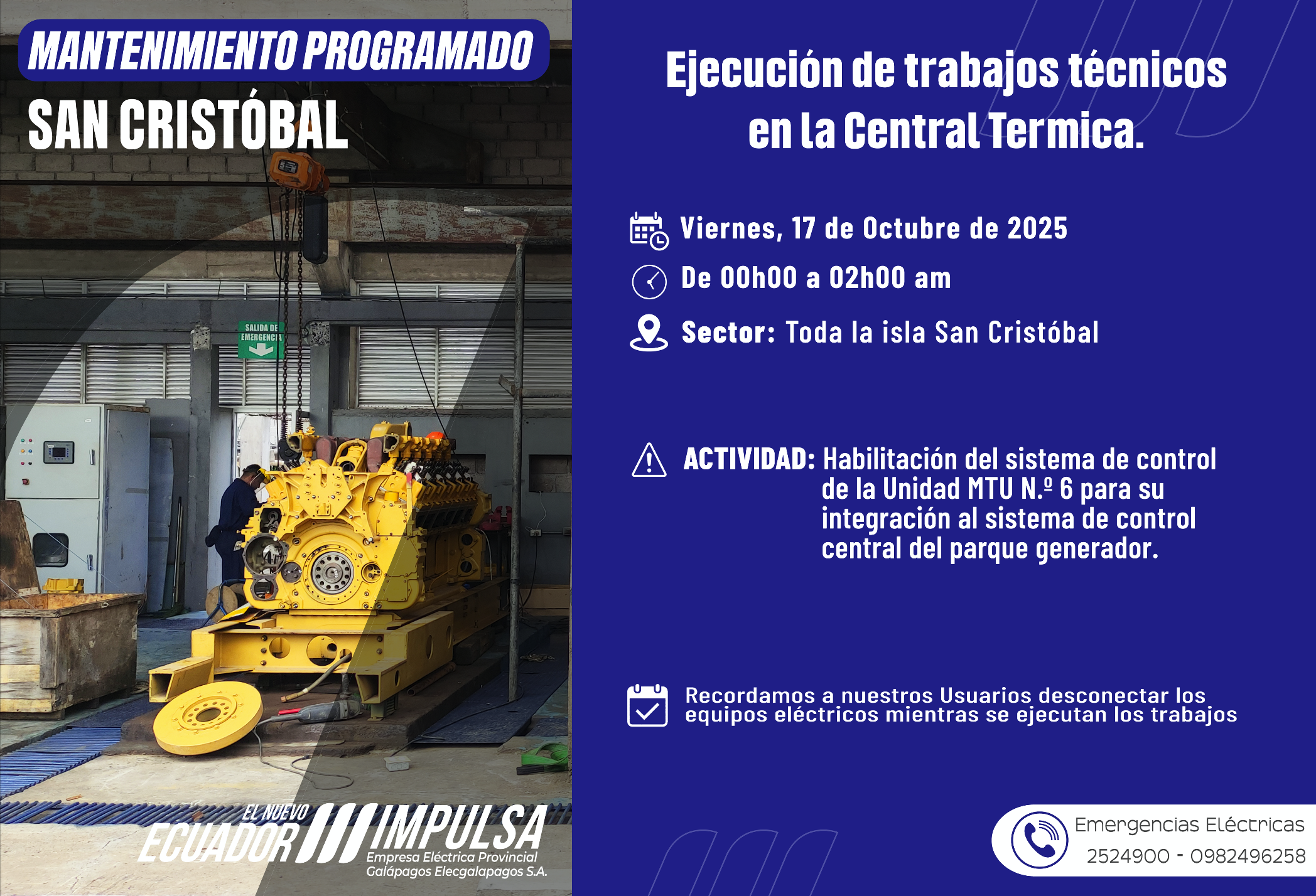 Mantenimientos Programados 17 de octubre 2025 San Cristóbal