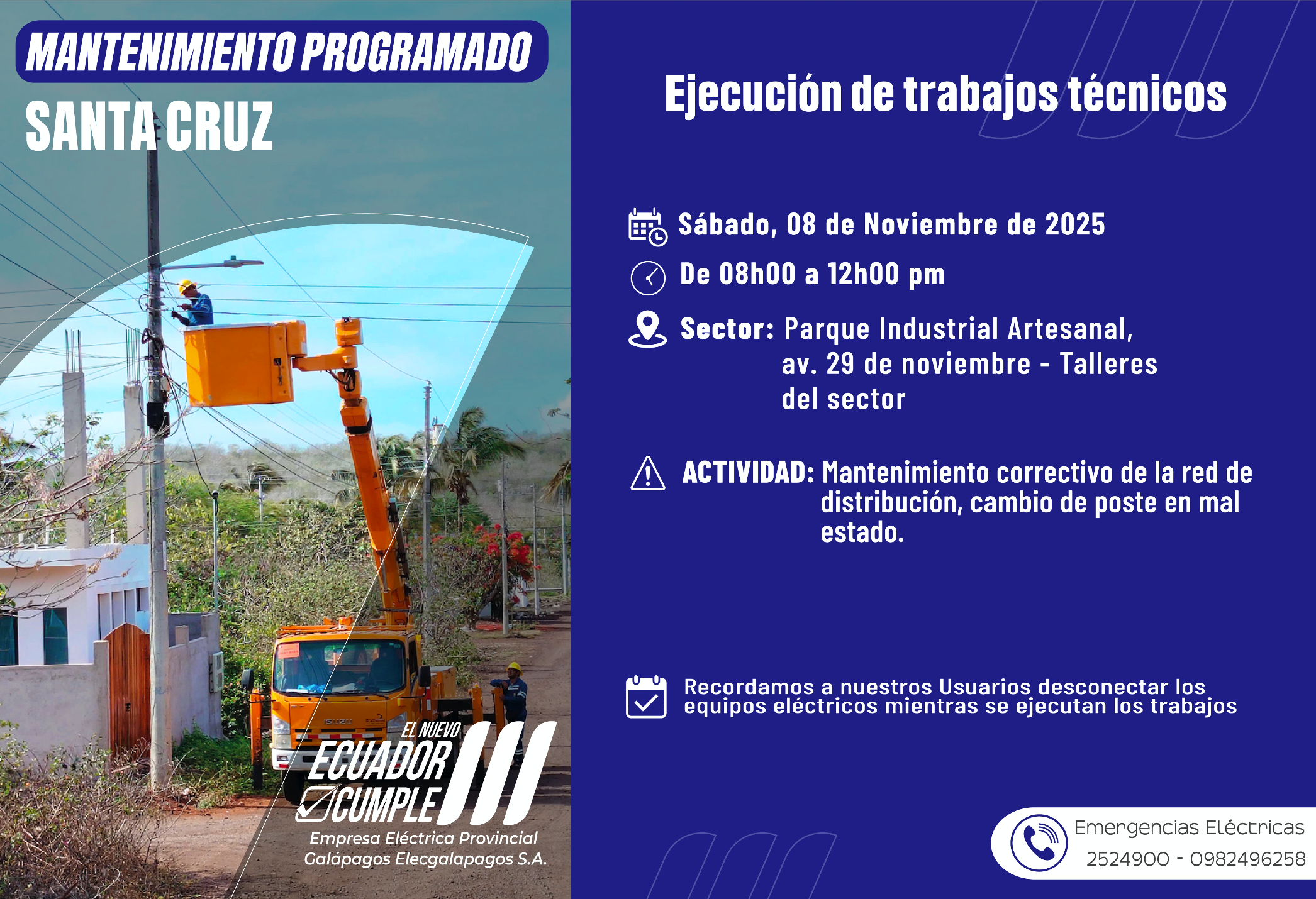Mantenimientos Programados Santa Cruz, 08 de noviembre de 2025