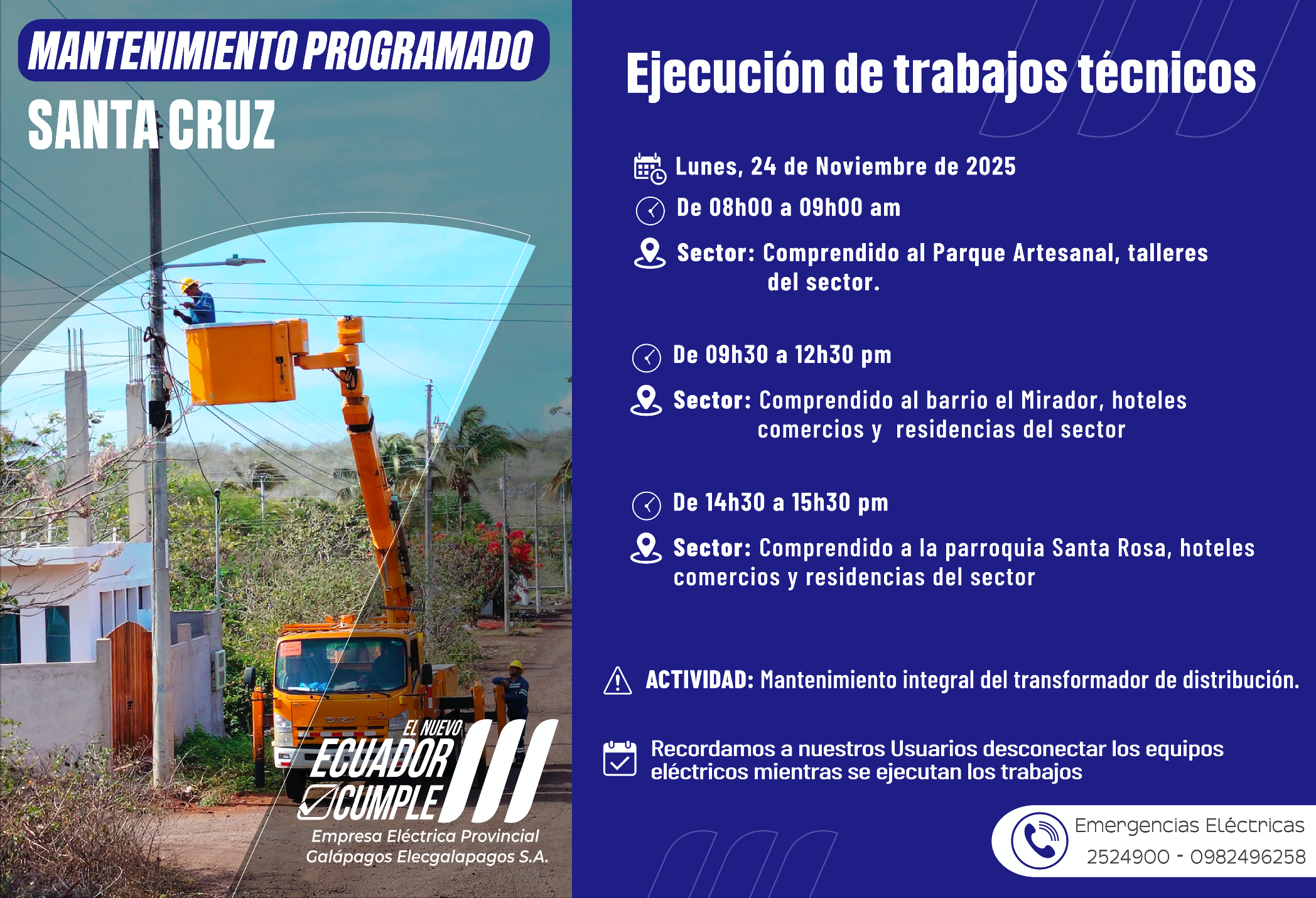 Mantenimientos Programados Santa Cruz, 24 de noviembre de 2025