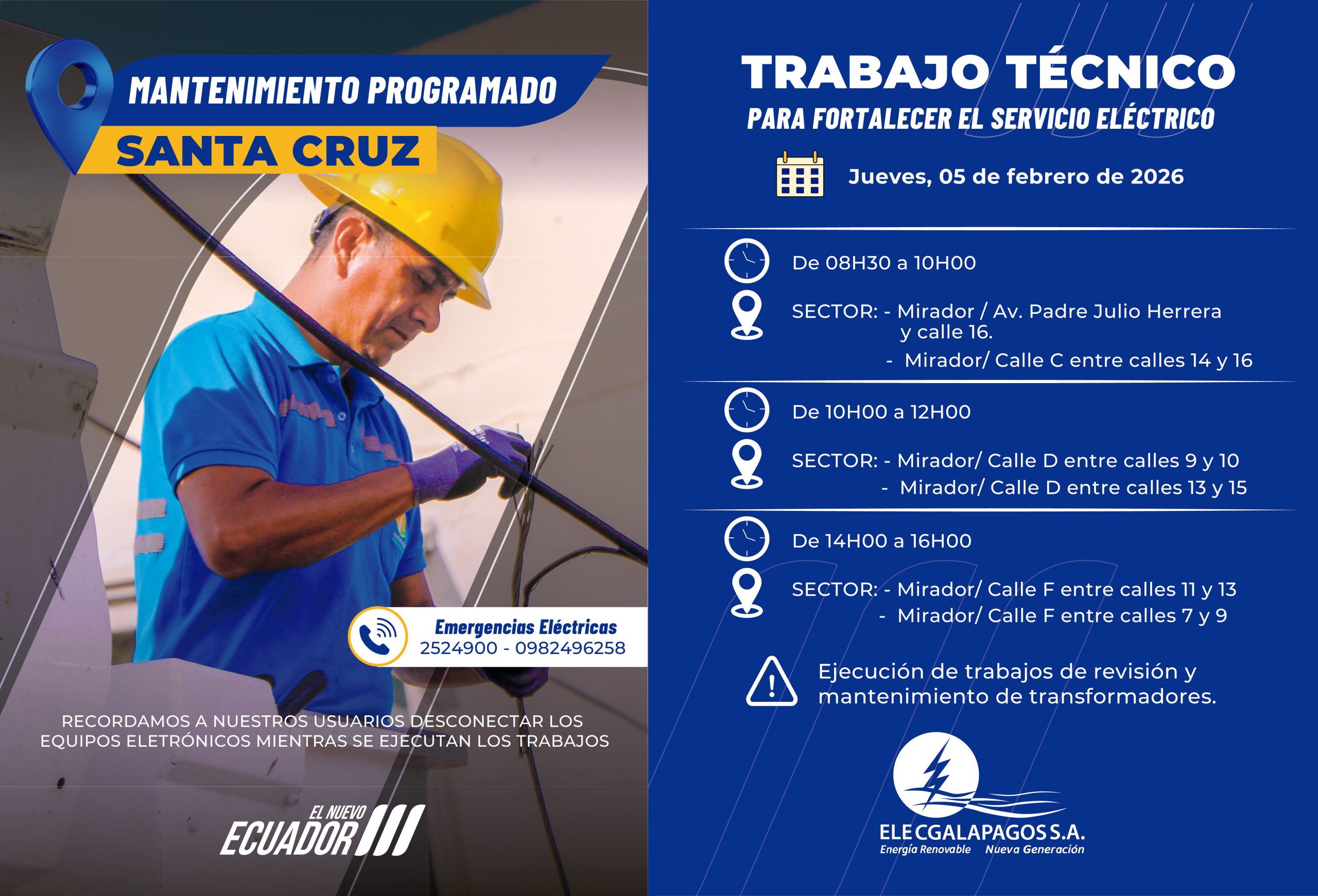 Mantenimientos Programados Santa Cruz, 05 de febrero de 2026.