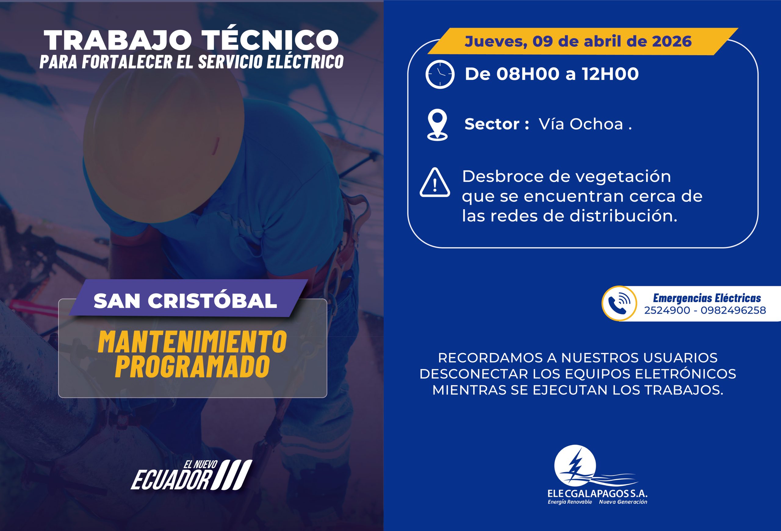 Mantenimientos Programados San Cristóbal, 8 de abril de 2026.