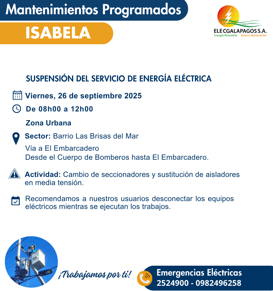 Atención, en Isabela trabajos programados, 27 y 28 de mayo 2025.